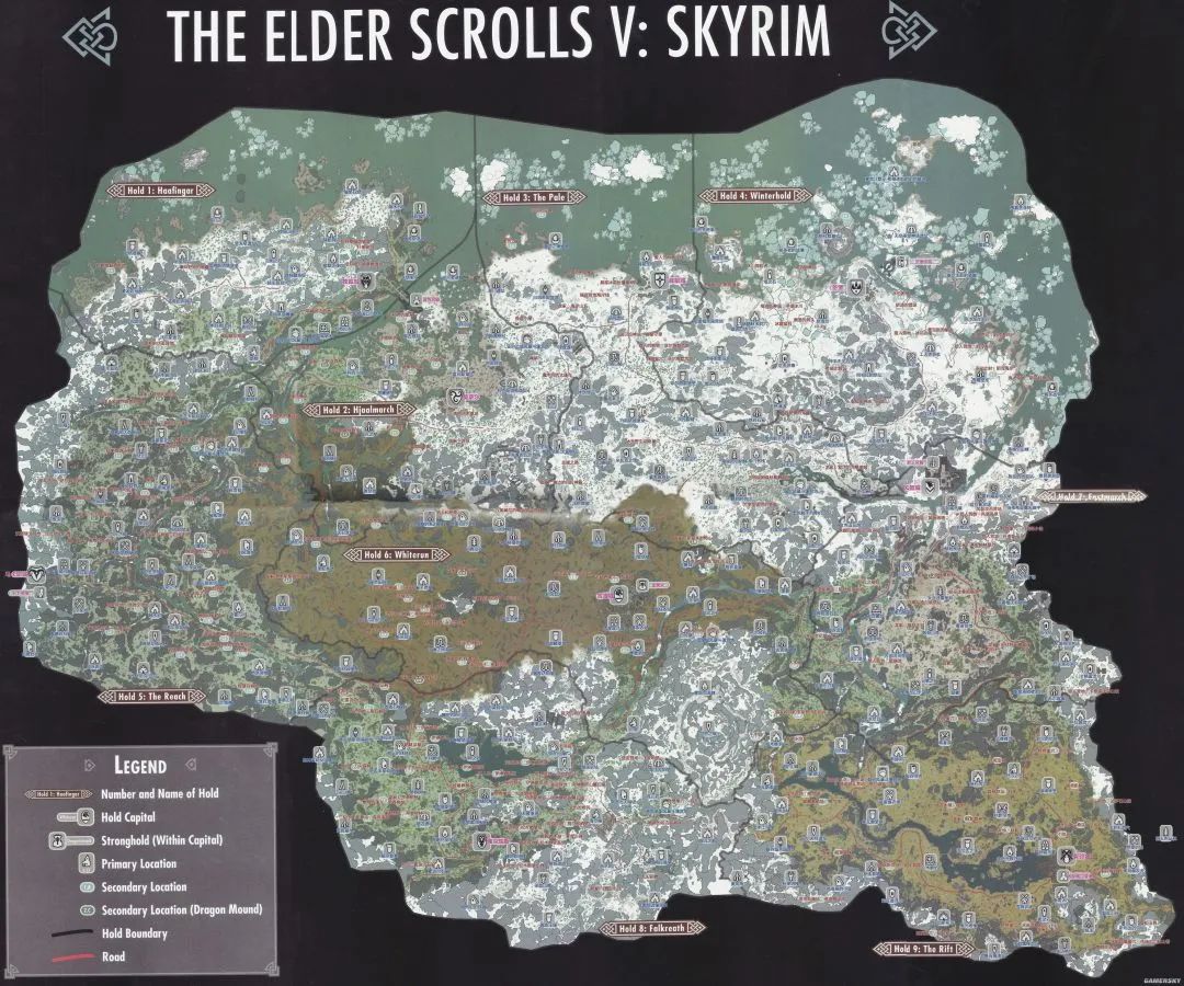 大多数强引导开放世界采取的是一种比较温和克制的触发式引导,例如《上古卷轴5》和《辐射4》。他们和育碧的开放世界一样,在地图上安排了大量的探索要素,但这些探索要素并不是在游戏开始就直观地呈现出来的。