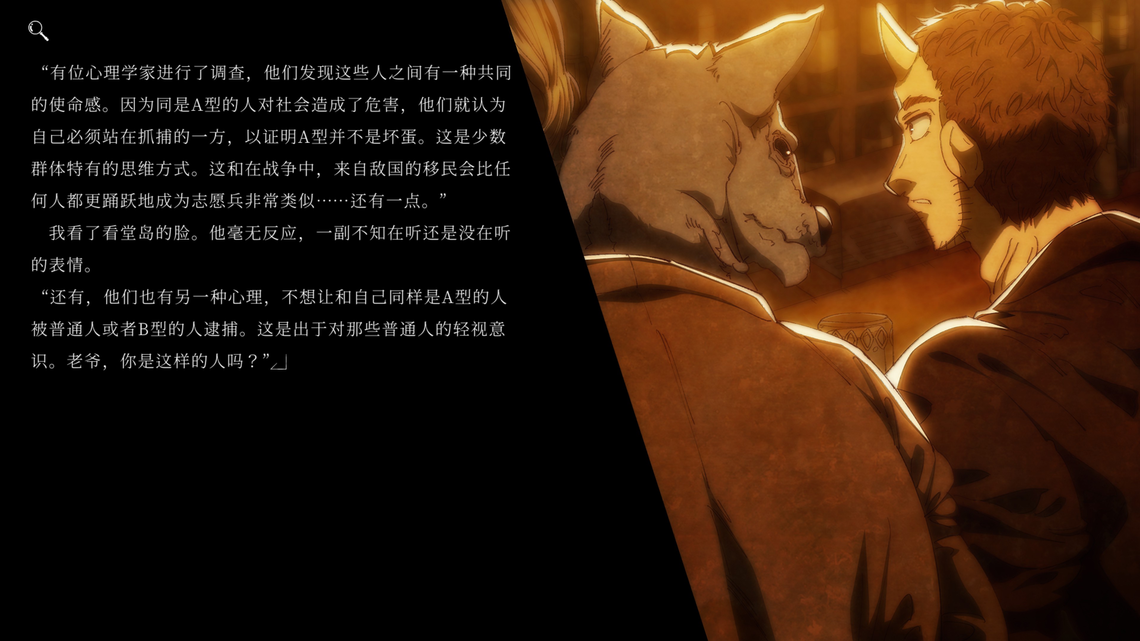 相比于传统视觉小说的对话框+立绘+背景的叙事UI,本作做了不小的改动,改成了动态头像+背景+长段文字的风格,一方面更适合作者长文本的写作风格,一方面更侧重于对人物表情的描绘,相当生动。