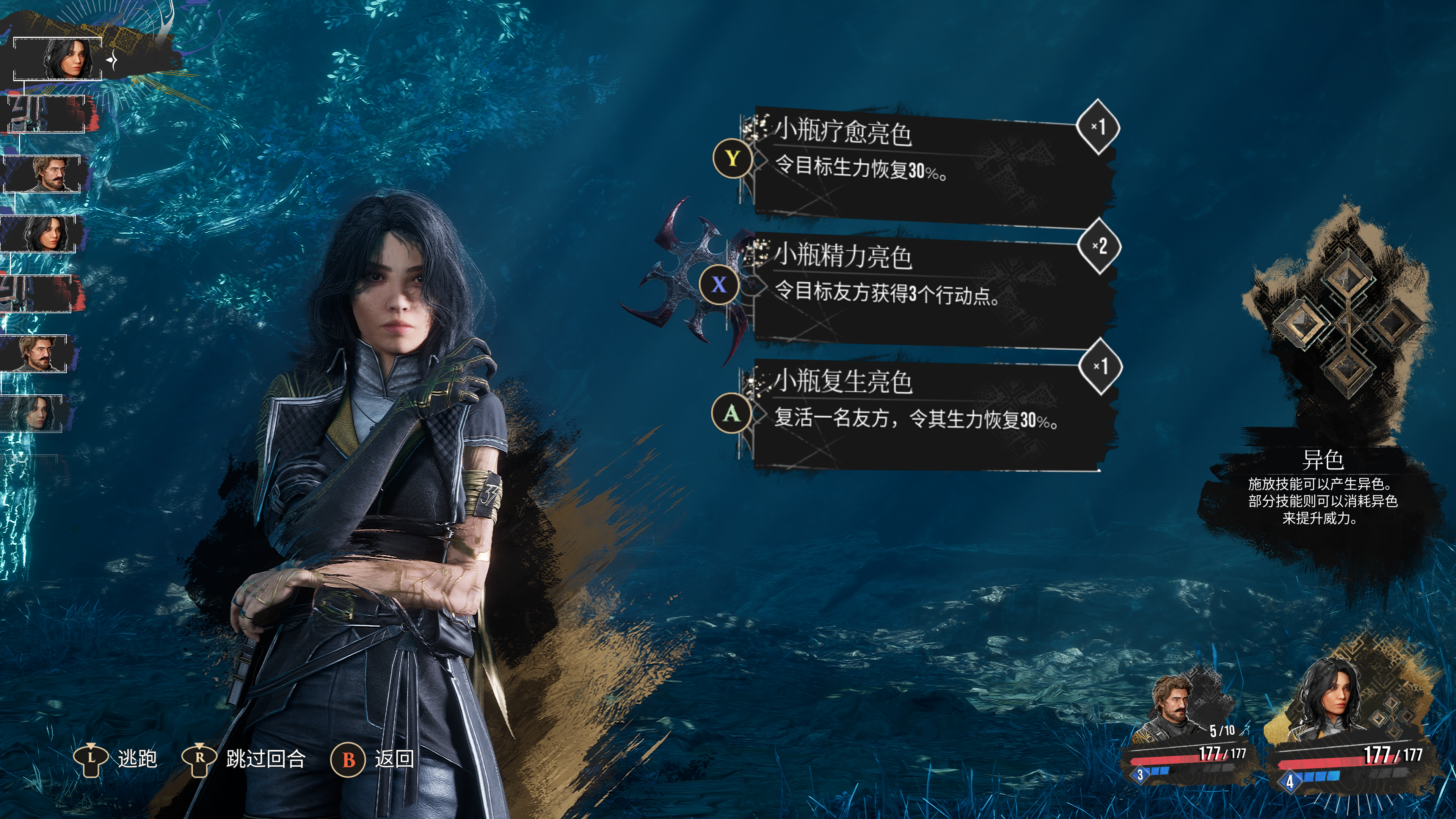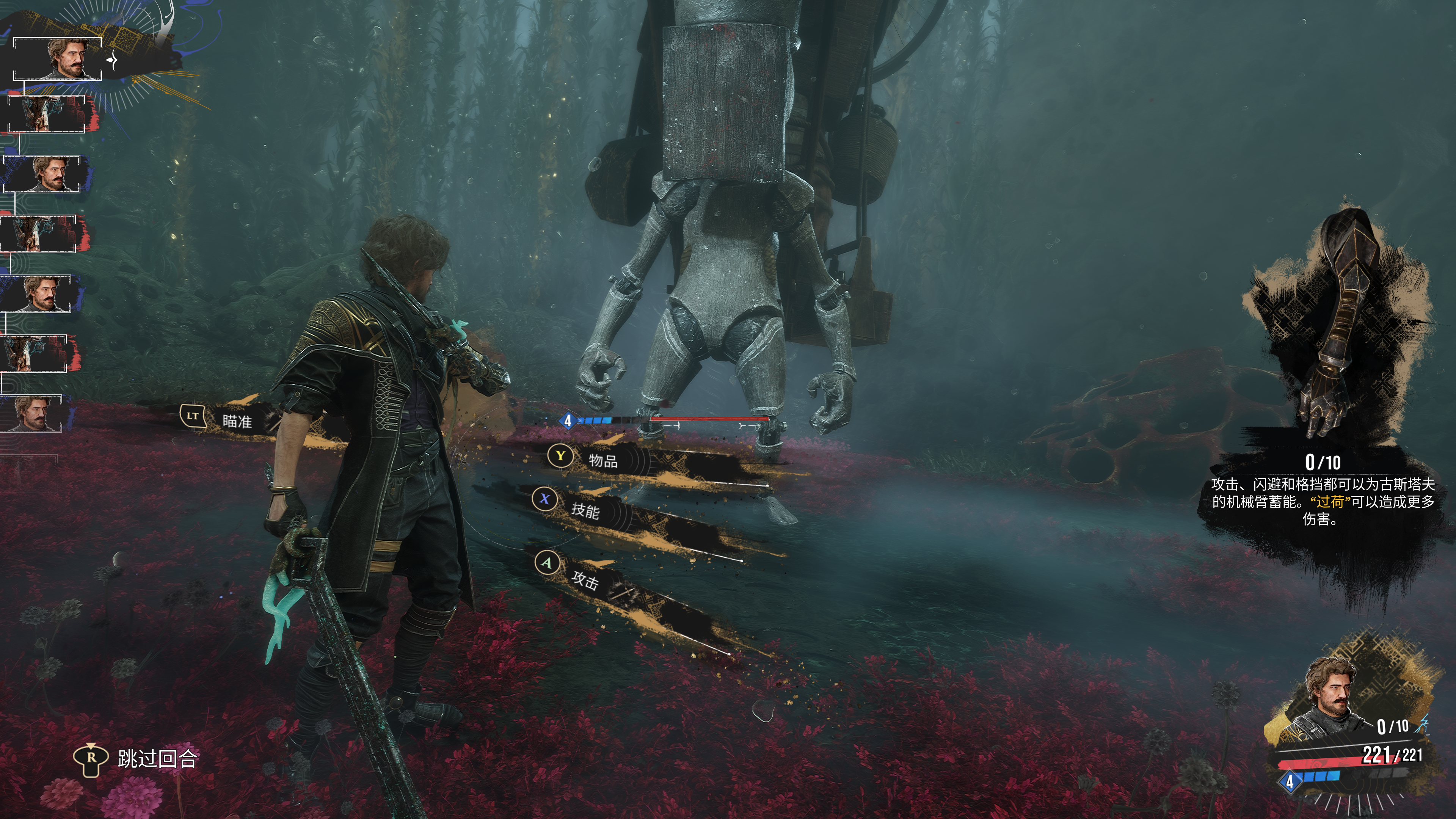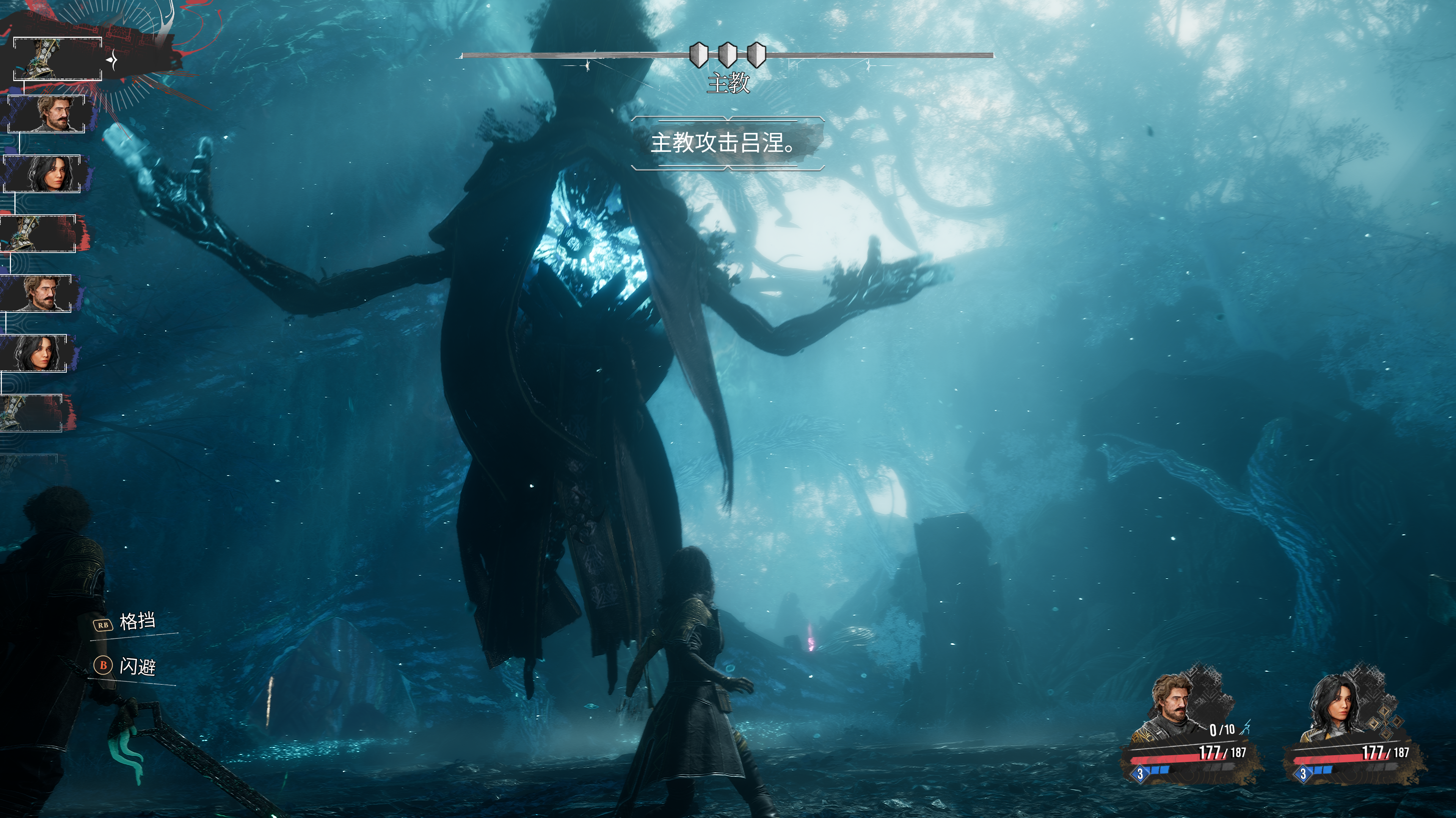 本作的回合制部分设计比较传统,以ATB回合制为底层设计,再加上积攒行动点并消耗来释放技能的循环。战斗的QTE大体可以分为两部分,我方技能的QTE和对敌人攻击的格挡/闪避。我方QTE难度低,节奏快,且基本融入了角色的攻击动画,完全不会影响节奏。而对敌人攻击的格挡,我认为和其他的QTE+回合制存在本质区别。