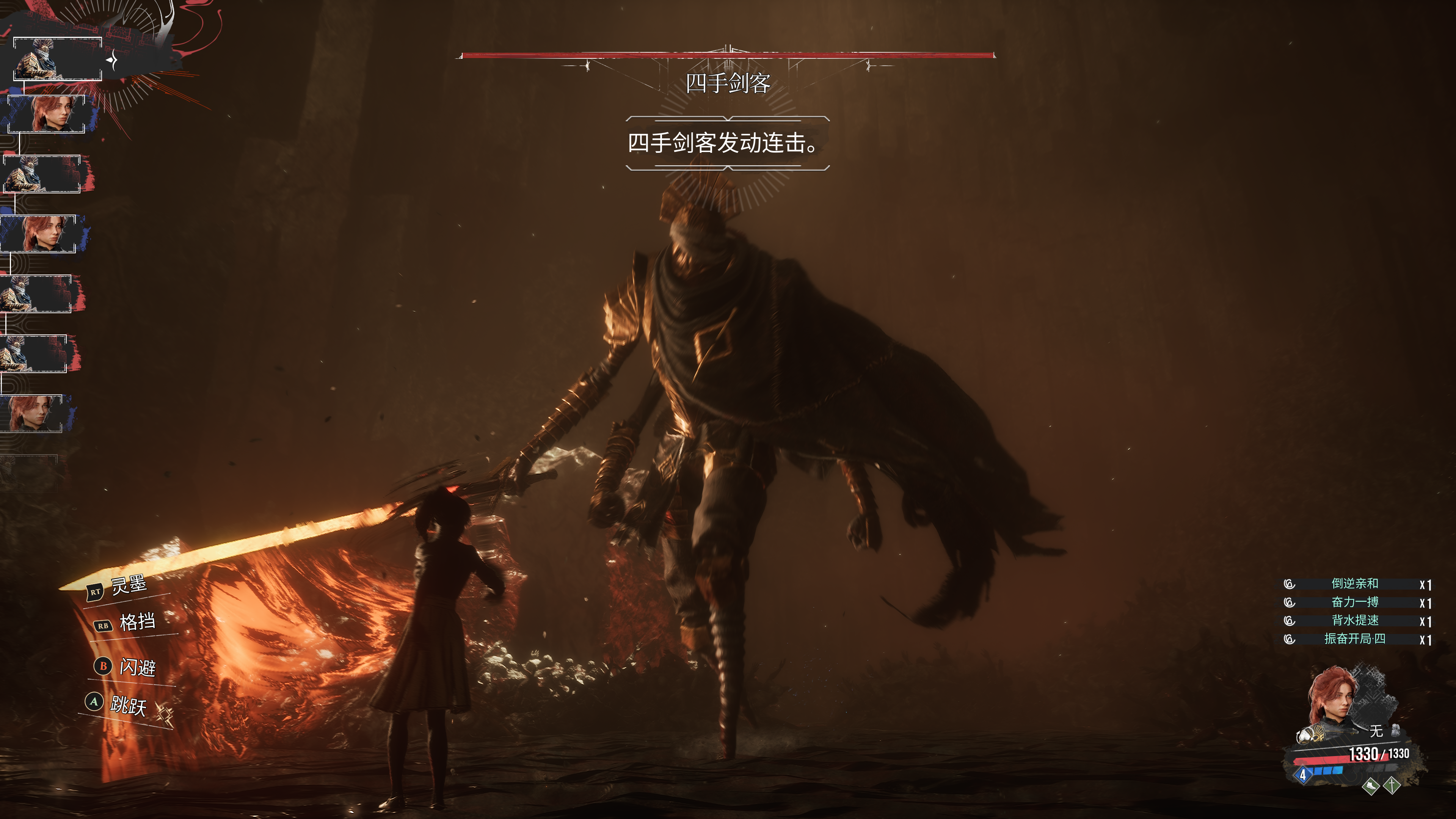 本作对敌人攻击的格挡,某种意义上已经超脱了简单QTE的范围,更多时候需要“目押”,通过对敌人动作的视觉判断以及对音效的反馈来做出弹反。相应的,敌人的动作设计也是相当优秀,大部分怪物攻击很有节奏感,视觉判断比较清晰,一整套弹下来让人直接梦回《只狼》。但确实也有部分敌人的攻击动画存在难以直接判断需要背板的问题。但后期部分敌人出现了和星之海一样的问题:虽然演出华丽,压迫感强,但攻击动画极其冗长,一轮下来需要等待很久,相当拖沓。