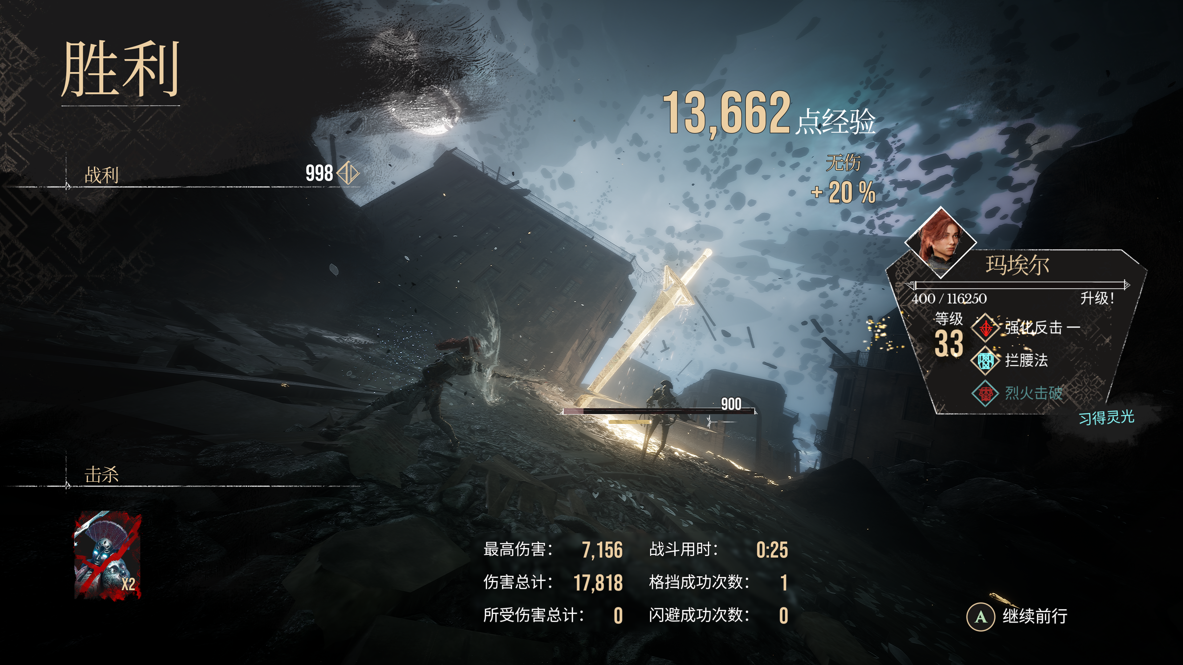 不过本作的数值疑似有点过于崩坏了。本作在探索奖励方面相当奢侈,积极地回报了玩家的探索欲。通过QTE越级挑战也能获得相当提前的奖励(而且难度并不大)。但奢侈过头也并非绝对的好事,我在第一章的中期就通过秘密竞技场获得了一套独狼符文,之后就顺理成章地构建了独狼流的滥强build,并用玛埃尔打出了9999的伤害上限。(顺带一提本章的伤害上限也是个不大好的设计,强行卡住上限防止数值彻底崩溃,强行让玩家和boss以正常的数值交互,而这种伤害上限直到游戏快要收尾时才会解除)而在达到伤害上限后,我开始猛堆速度/防御,并通过探索获得了23级,20级的两个符纹,至此主线的战斗体验彻底索然无味(即使是高难度)。中期小怪基本通过射击就能排队枪毙结束战斗,面对boss即使不防御也只会受到两位数的伤害,而每次弹反成功便立刻回满。